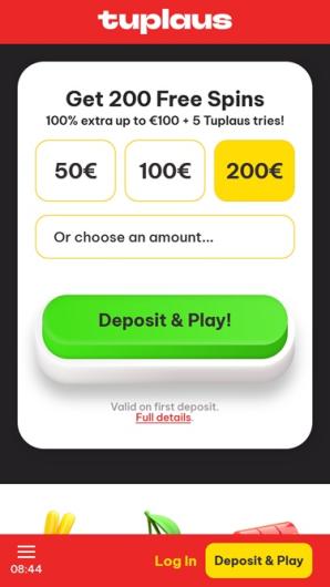 Tuplauksen tervetulotarjous on 100 % jopa 100 € asti sekä 200 Free Spins -kierrosta, jotka jaetaan 40 kierroksen erissä 5 päivän ajan. Lisäksi tarjoukseen kuuluu 5 mahdollisuutta Tuplaus Double-Up Game -peliin, yksi per päivä 5 päivän ajan, 1 € per yritys, ja yksittäisen pelin potentiaali voi nousta jopa 5 000 euroon.